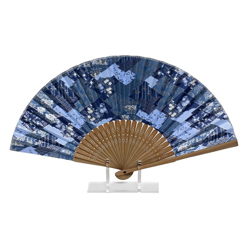 Folding fan is normally used for cooling down or as sunshade, and besides, you can also enjoy scent with a little perfumed folding fan. Thin and long ribs made of bamboo are riveted together at the end and coverd with a paper or cloth. Folding fan can be opened and closed. When it's closed, the shape is like a bar and easy to carry. The shape of folding fan opend is called “suehirogari” in Japan which means that it widens towards the end, therefore symbolized development, prosperity and good fortune.