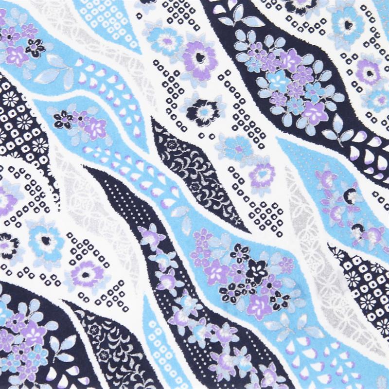 Hand-Dyed Yuzen paper is a kind of decorative paper screen-printed with multi-color. Japanese classical pattern designed with modern touch boldly and delicately, known as “Beauties of nature”, is used on this paper. “Beauties of nature” are also often used in kimono and most these bright, rich colors and motifs signify good fortune. This paper can be used in various ways, for example, wrapping, decorating walls and so on. This paper is made of Echizen washi paper produced in Echizen City (Fukui Prefecture, Japan). Washi paper in this area is designated as an Important Intangible Cultural Property of Japan, and has an established reputation for its high quality. Yuzen paper is hand-dyed color by color, so has some displacements of the patterns and color shadings. Thanks to these, it has a tasteful, unique texture or, a characteristic of hand-dyed products. size: 525 x 660 mm (pattern area: 500 x 635 mm)