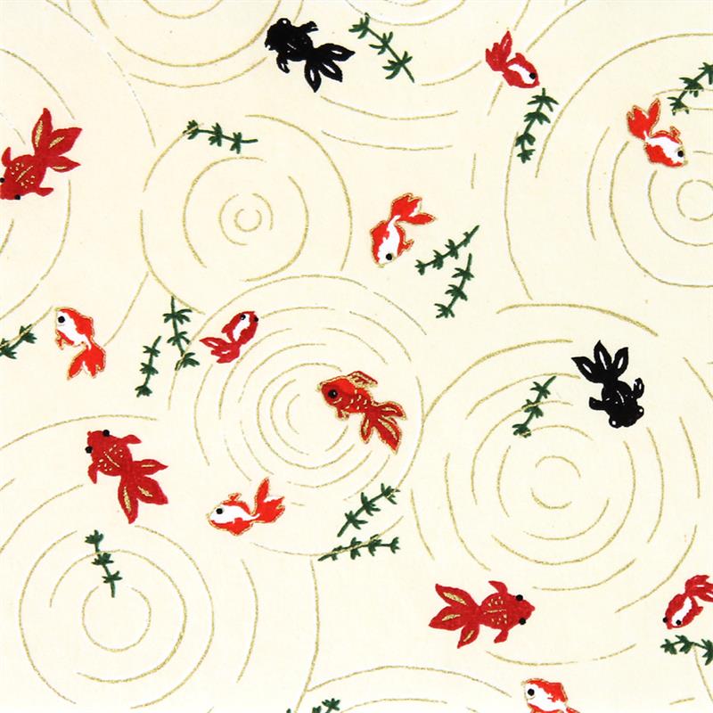Hand-Dyed Yuzen paper is a kind of decorative paper screen-printed with multi-color. Japanese classical pattern designed with modern touch boldly and delicately, known as “Beauties of nature”, is used on this paper. “Beauties of nature” are also often used in kimono and most these bright, rich colors and motifs signify good fortune. This paper can be used in various ways, for example, wrapping, decorating walls and so on. This paper is made of Echizen washi paper produced in Echizen City (Fukui Prefecture, Japan). Washi paper in this area is designated as an Important Intangible Cultural Property of Japan, and has an established reputation for its high quality. Yuzen paper is hand-dyed color by color, so has some displacements of the patterns and color shadings. Thanks to these, it has a tasteful, unique texture or, a characteristic of hand-dyed products. size: 525 x 660 mm (pattern area: 500 x 635 mm)