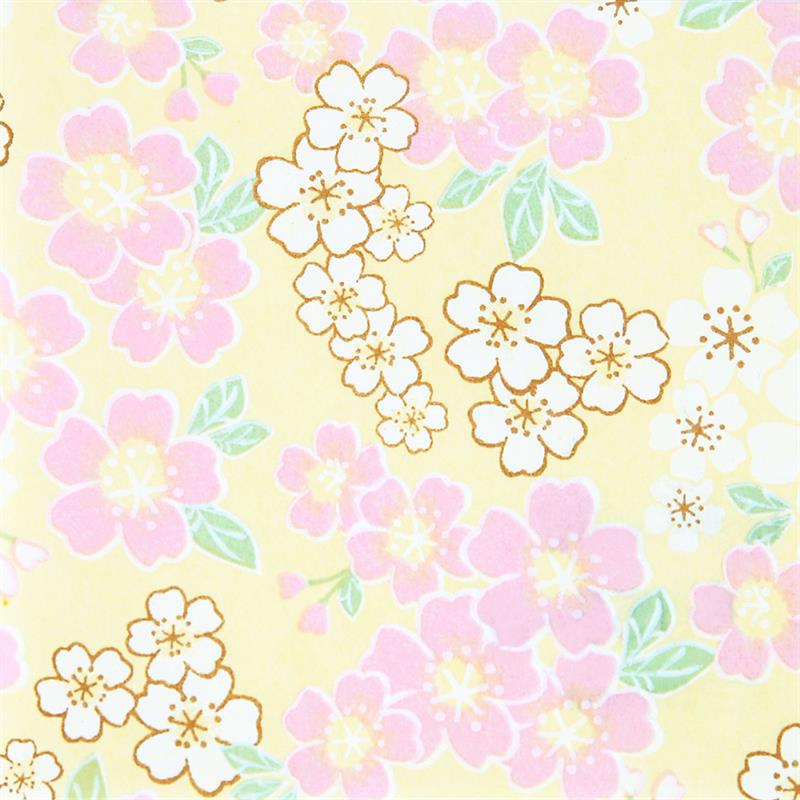 Hand-Dyed Yuzen paper is a kind of decorative paper screen-printed with multi-color. Japanese classical pattern designed with modern touch boldly and delicately, known as “Beauties of nature”, is used on this paper. “Beauties of nature” are also often used in kimono and most these bright, rich colors and motifs signify good fortune. This paper can be used in various ways, for example, wrapping, decorating walls and so on. This paper is made of Echizen washi paper produced in Echizen City (Fukui Prefecture, Japan). Washi paper in this area is designated as an Important Intangible Cultural Property of Japan, and has an established reputation for its high quality. Yuzen paper is hand-dyed color by color, so has some displacements of the patterns and color shadings. Thanks to these, it has a tasteful, unique texture or, a characteristic of hand-dyed products.