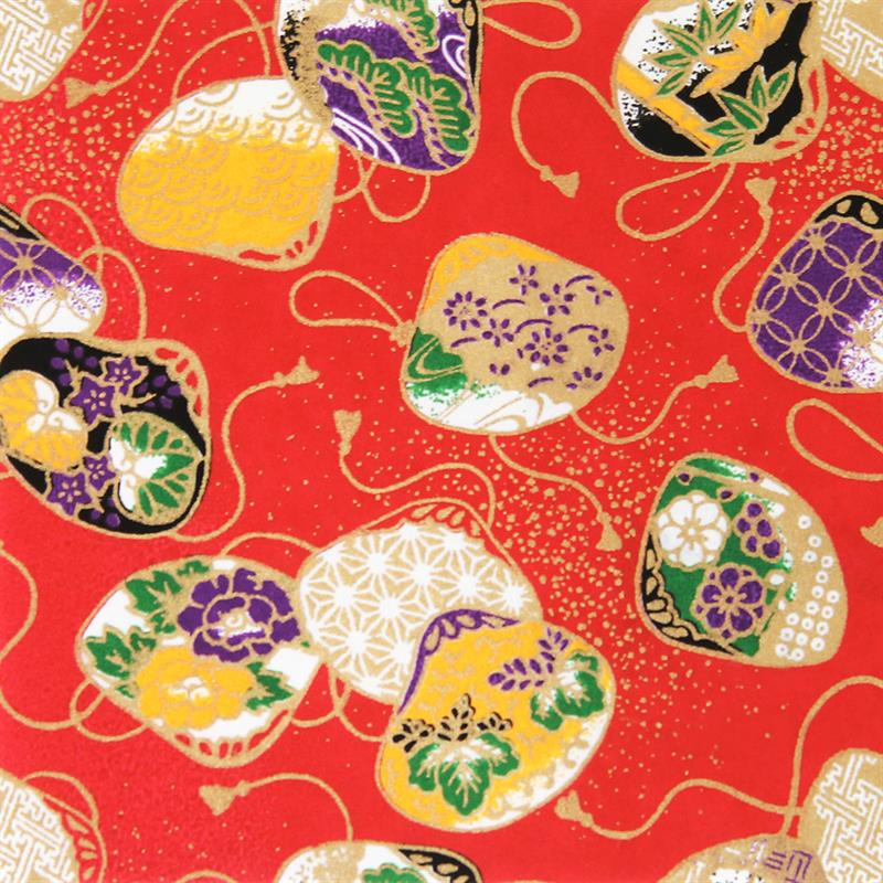 Hand-Dyed Yuzen paper is a kind of decorative paper screen-printed with multi-color. Japanese classical pattern designed with modern touch boldly and delicately, known as “Beauties of nature”, is used on this paper. “Beauties of nature” are also often used in kimono and most these bright, rich colors and motifs signify good fortune. This paper can be used in various ways, for example, wrapping, decorating walls and so on. This paper is made of Echizen washi paper produced in Echizen City (Fukui Prefecture, Japan). Washi paper in this area is designated as an Important Intangible Cultural Property of Japan, and has an established reputation for its high quality. Yuzen paper is hand-dyed color by color, so has some displacements of the patterns and color shadings. Thanks to these, it has a tasteful, unique texture or, a characteristic of hand-dyed products.