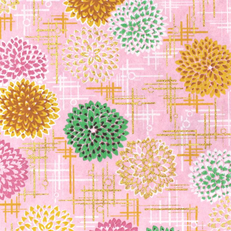 Hand-Dyed Yuzen paper is a kind of decorative paper screen-printed with multi-color. Japanese classical pattern designed with modern touch boldly and delicately, known as “Beauties of nature”, is used on this paper. “Beauties of nature” are also often used in kimono and most these bright, rich colors and motifs signify good fortune. This paper can be used in various ways, for example, wrapping, decorating walls and so on. This paper is made of Echizen washi paper produced in Echizen City (Fukui Prefecture, Japan). Washi paper in this area is designated as an Important Intangible Cultural Property of Japan, and has an established reputation for its high quality. Yuzen paper is hand-dyed color by color, so has some displacements of the patterns and color shadings. Thanks to these, it has a tasteful, unique texture or, a characteristic of hand-dyed products. size: 525 x 660 mm (pattern area: 500 x 635 mm)