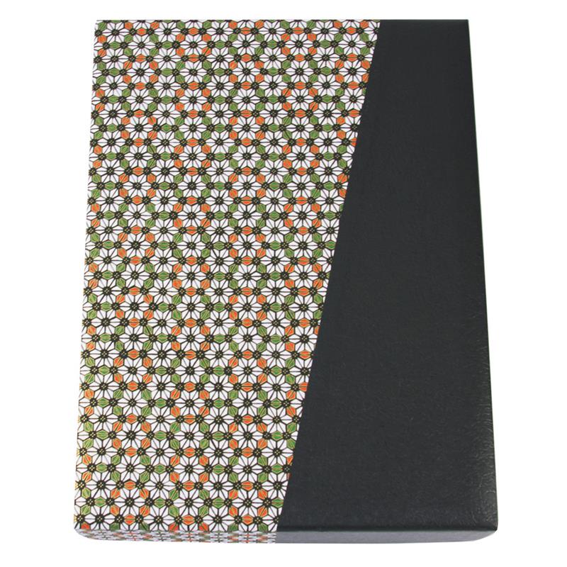 A paper telescope type box made with gorgeous Yuzen paper. Great for organizing A4-size documents (297 x 210 mm) and small items. Also can be used as a gift box to spice up your presents. On this hand-dyed yuzen paper, multiple colors are screen printed. It features classical patterns with modern touches, boldly and delicately designed based on traditional Japanese kimono nature patterns including beautiful scenery. Many of these bright, rich colors and traditional patterns signify good fortune. This paper can be used for a variety of purposes, from decorating boxes and walls to wrapping. This paper uses Echizen washi produced in Echizen City (Fukui Prefecture, Japan). Washi from this area is designated as an Important Intangible Cultural Property of Japan, and has an established reputation for high quality. Yuzen washi is hand dyed color by color, creating a certain amount of variations in patterns and colors. This gives it flavor, and is a characteristic of hand-dyed products.