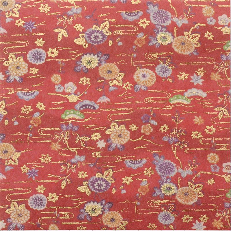 “Kyo” means Kyoto and “koromo” means clothing, especially kimono. On this decorative paper, kimono patterns are used as a motif. Beautiful traditional patterns designed modernly and golden paint are used elegantly and effectively. This paper can be used in various ways, for example, wrapping, decorating walls and so on. This paper is made of Echizen washi paper produced in Echizen City (Fukui Prefecture, Japan). Washi paper in this area is designated as an Important Intangible Cultural Property of Japan, and has an established reputation for its high quality. size: 480 x 650 mm (pattern area: 462 x 632 mm)