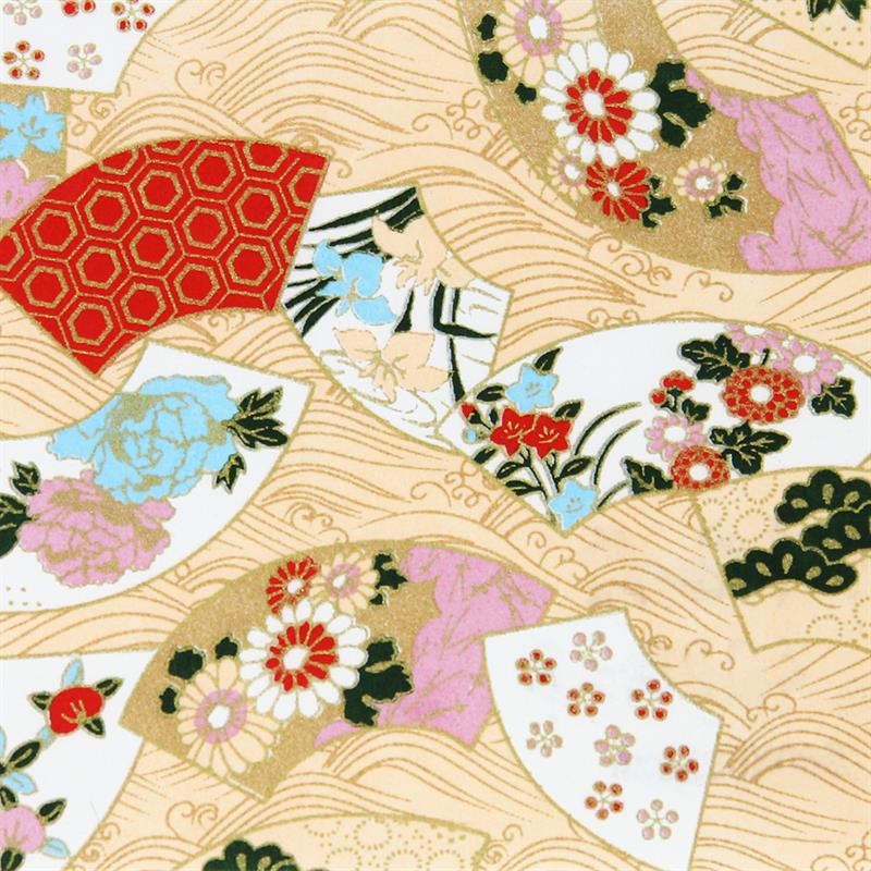 華やかな友禅文様を、多色刷りの技法(スクリーン印刷)で和紙に印刷しています。