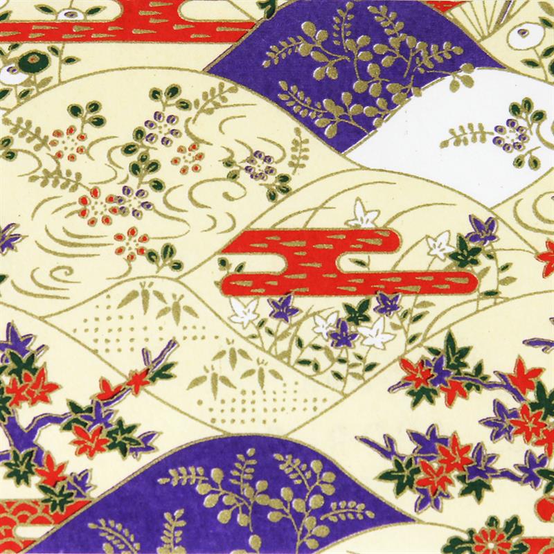 柄名:秋の遠山 華やかな友禅文様を、多色刷りの技法(スクリーン印刷)で和紙に印刷しています。 【商品仕様】 品番:CZ4003-002 寸法:原紙 525×660mm、柄部分 500×635mm 内容:- 素材:和紙 個装:- 包装:紙包 備考:- 【手染友禅和紙について】 当社の手染友禅和紙は1色ずつ手作業で加工しています。 そのため多少の柄のズレや染め色のゆらぎが生じ、味わい深く独特の風合いが生まれます。 手染めの特徴としてご理解ください。