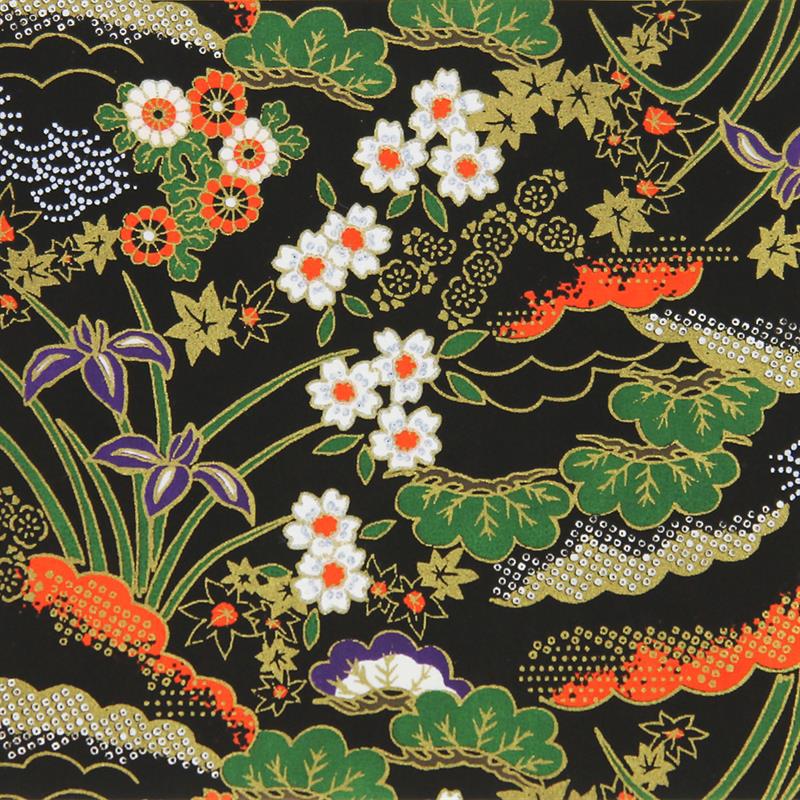 華やかな友禅文様を、多色刷りの技法(スクリーン印刷)で和紙に印刷しています。