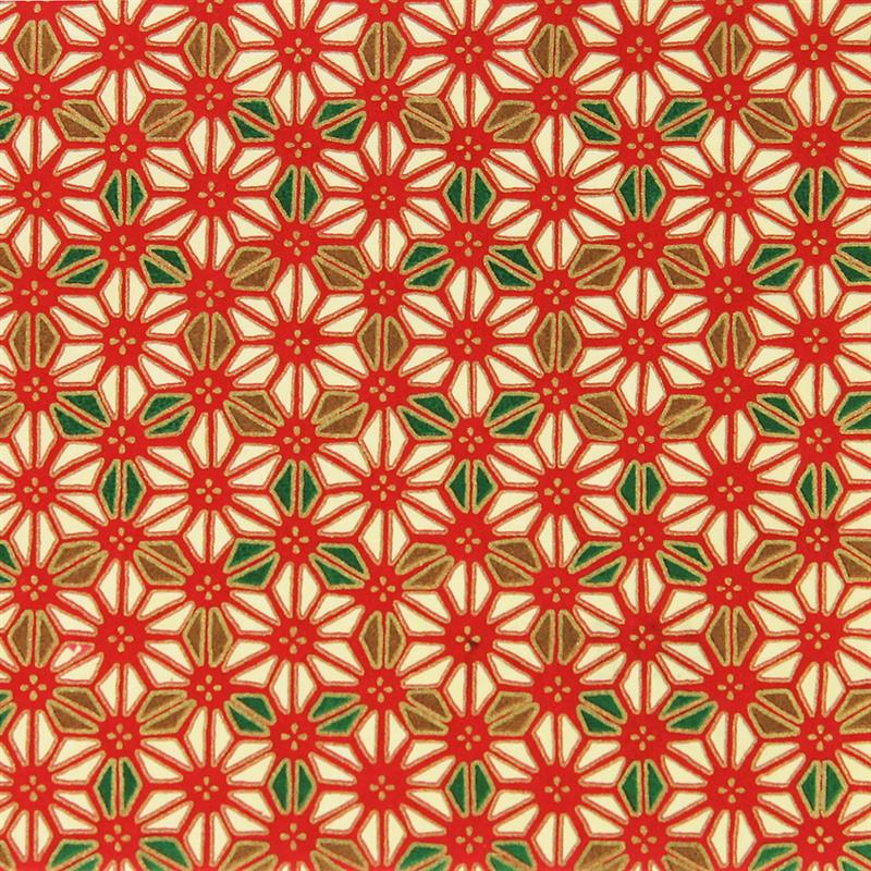 柄名:麻の葉文様 華やかな友禅文様を、多色刷りの技法(スクリーン印刷)で和紙に印刷しています。 【商品仕様】 品番:CZ4021-001 寸法:原紙 525×660mm、柄部分 500×635mm 内容:- 素材:和紙 個装:- 包装:紙包 備考:- 【手染友禅和紙について】 当社の手染友禅和紙は1色ずつ手作業で加工しています。 そのため多少の柄のズレや染め色のゆらぎが生じ、味わい深く独特の風合いが生まれます。 手染めの特徴としてご理解ください。