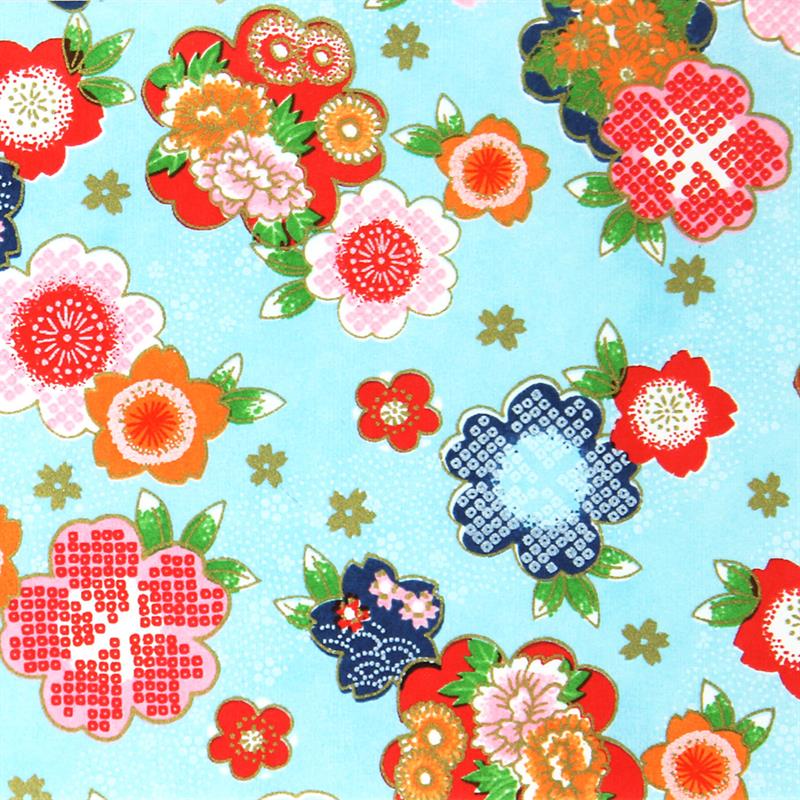華やかな友禅文様を、多色刷りの技法(スクリーン印刷)で和紙に印刷しています。