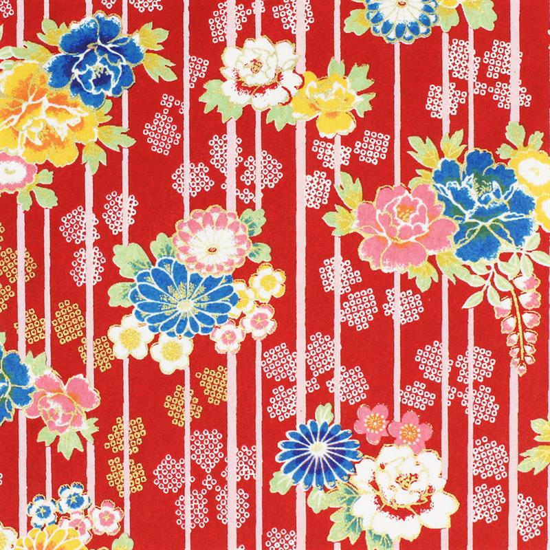 柄名:立縞に牡丹文様 華やかな友禅文様を、多色刷りの技法(スクリーン印刷)で和紙に印刷しています。 【商品仕様】 品番:CZ4061-003 寸法:原紙 525×660mm、柄部分 500×635mm 重量:21g 素材:和紙 包装:紙包 備考:- 【手染友禅和紙について】 当社の手染友禅和紙は1色ずつ手作業で加工しています。 そのため多少の柄のズレや染め色のゆらぎが生じ、味わい深く独特の風合いが生まれます。 手染めの特徴としてご理解ください。