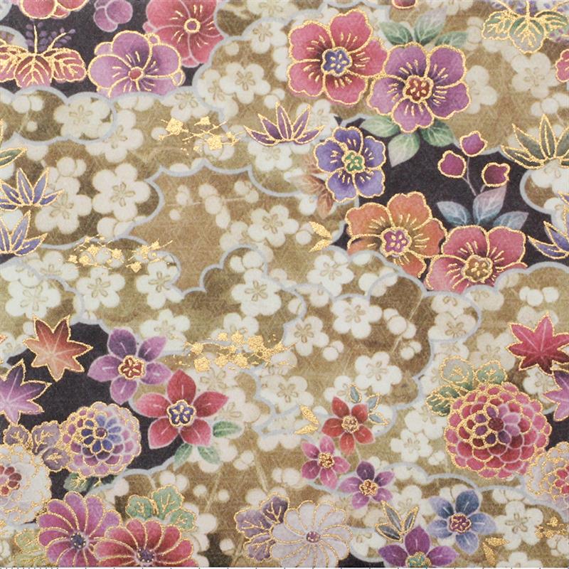 柄名:- 着物の柄をモチーフに、伝統的な形式美に現代的な感覚を取り入れたデザイン。 金彩が上品なアクセントになっています。 【商品仕様】 品番:KK1001-004 寸法:原紙寸法 480×650mm、柄部分 462×632mm 内容:- 素材:和紙 個装:- 包装:紙包 備考:-