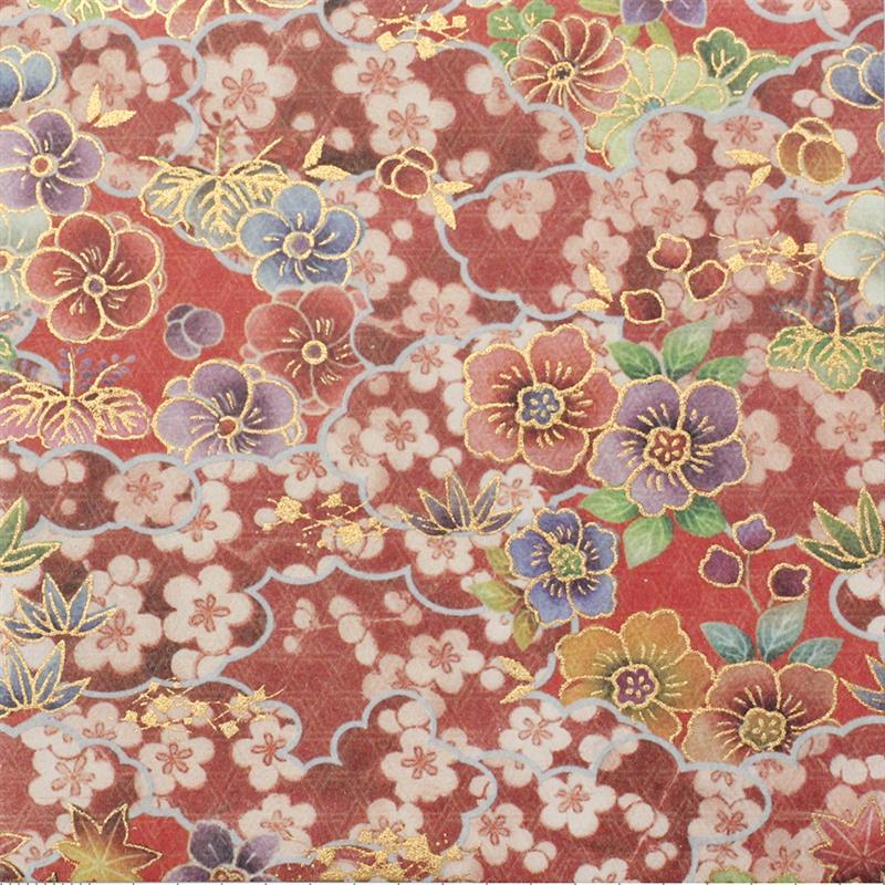 柄名:- 着物の柄をモチーフに、伝統的な形式美に現代的な感覚を取り入れたデザイン。 金彩が上品なアクセントになっています。 【商品仕様】 品番:KK1001-006 寸法:原紙寸法 480×650mm、柄部分 462×632mm 内容:- 素材:和紙 個装:- 包装:紙包 備考:-