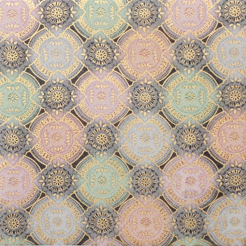 柄名:- 着物の柄をモチーフに、伝統的な形式美に現代的な感覚を取り入れたデザイン。 金彩が上品なアクセントになっています。 【商品仕様】 品番:KK1002-002 寸法:原紙寸法 480×650mm、柄部分 462×632mm 内容:- 素材:和紙 個装:- 包装:紙包 備考:-