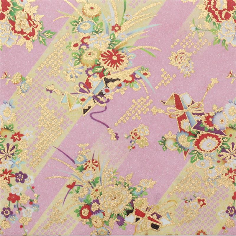 柄名:- 着物の柄をモチーフに、伝統的な形式美に現代的な感覚を取り入れたデザイン。 金彩が上品なアクセントになっています。 【商品仕様】 品番:KK1003-003 寸法:原紙寸法 480×650mm、柄部分 462×632mm 内容:- 素材:和紙 個装:- 包装:紙包 備考:-