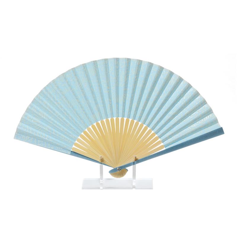Folding fan is normally used for cooling down or as sunshade, and besides, you can also enjoy scent with a little perfumed folding fan. Thin and long ribs made of bamboo are riveted together at the end and coverd with a paper or cloth. Folding fan can be opened and closed. When it's closed, the shape is like a bar and easy to carry. The shape of folding fan opend is called “suehirogari” in Japan which means that it widens towards the end, therefore symbolized development, prosperity and good fortune.