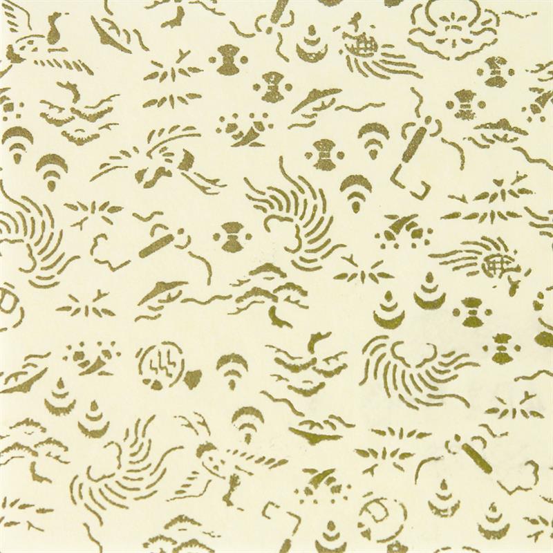 Hand-Dyed Yuzen paper is a kind of decorative paper screen-printed with multi-color. Japanese classical pattern designed with modern touch boldly and delicately, known as “Beauties of nature”, is used on this paper. “Beauties of nature” are also often used in kimono and most these bright, rich colors and motifs signify good fortune. This paper can be used in various ways, for example, wrapping, decorating walls and so on. This paper is made of Echizen washi paper produced in Echizen City (Fukui Prefecture, Japan). Washi paper in this area is designated as an Important Intangible Cultural Property of Japan, and has an established reputation for its high quality. Yuzen paper is hand-dyed color by color, so has some displacements of the patterns and color shadings. Thanks to these, it has a tasteful, unique texture or, a characteristic of hand-dyed products. A4 sample size (297 x 210 mm).