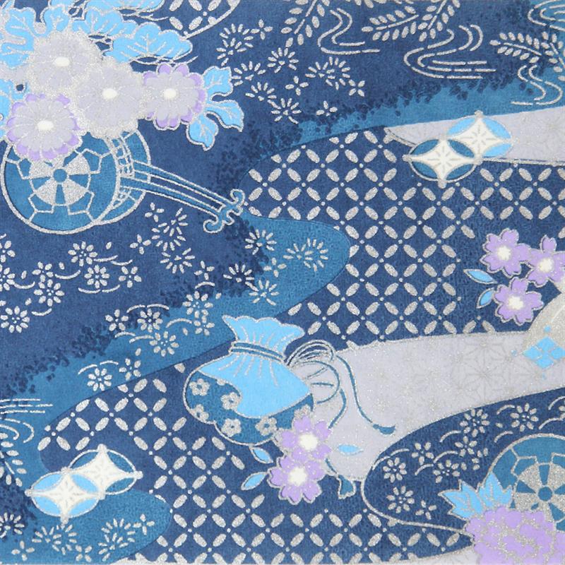 Hand-Dyed Yuzen paper is a kind of decorative paper screen-printed with multi-color. Japanese classical pattern designed with modern touch boldly and delicately, known as “Beauties of nature”, is used on this paper. “Beauties of nature” are also often used in kimono and most these bright, rich colors and motifs signify good fortune. This paper can be used in various ways, for example, wrapping, decorating walls and so on. This paper is made of Echizen washi paper produced in Echizen City (Fukui Prefecture, Japan). Washi paper in this area is designated as an Important Intangible Cultural Property of Japan, and has an established reputation for its high quality. Yuzen paper is hand-dyed color by color, so has some displacements of the patterns and color shadings. Thanks to these, it has a tasteful, unique texture or, a characteristic of hand-dyed products. size: 525 x 660 mm (pattern area: 500 x 635 mm)
