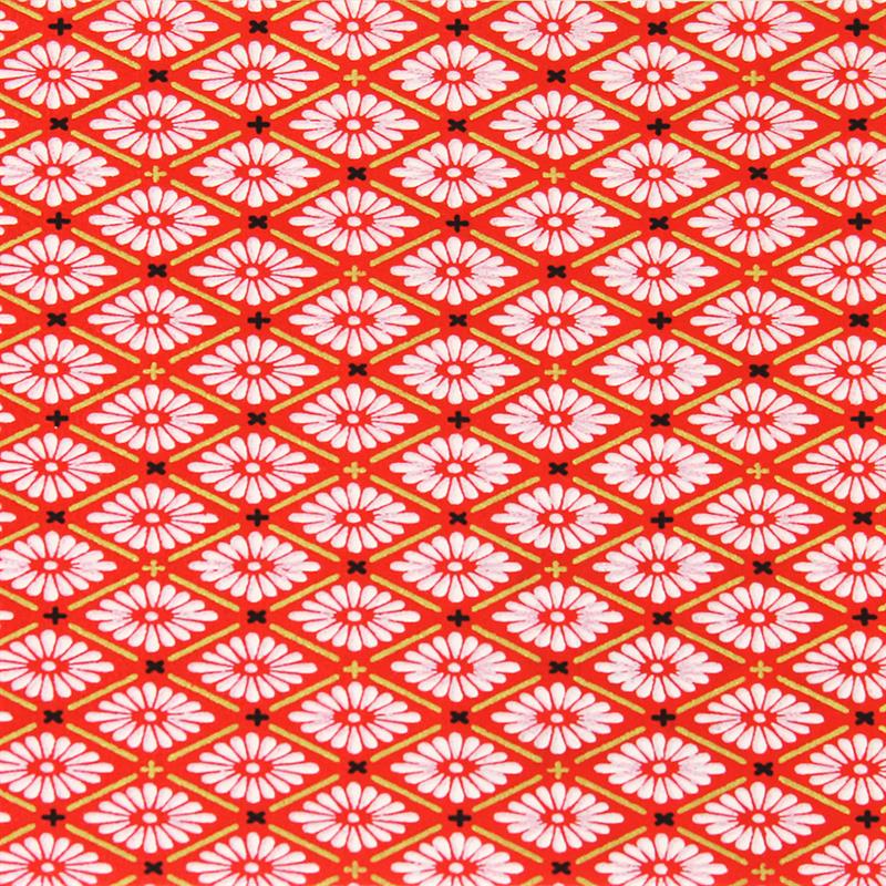 Hand-Dyed Yuzen paper is a kind of decorative paper screen-printed with multi-color. Japanese classical pattern designed with modern touch boldly and delicately, known as “Beauties of nature”, is used on this paper. “Beauties of nature” are also often used in kimono and most these bright, rich colors and motifs signify good fortune. This paper can be used in various ways, for example, wrapping, decorating walls and so on. This paper is made of Echizen washi paper produced in Echizen City (Fukui Prefecture, Japan). Washi paper in this area is designated as an Important Intangible Cultural Property of Japan, and has an established reputation for its high quality. Yuzen paper is hand-dyed color by color, so has some displacements of the patterns and color shadings. Thanks to these, it has a tasteful, unique texture or, a characteristic of hand-dyed products. size: 525 x 660 mm (pattern area: 500 x 635 mm)