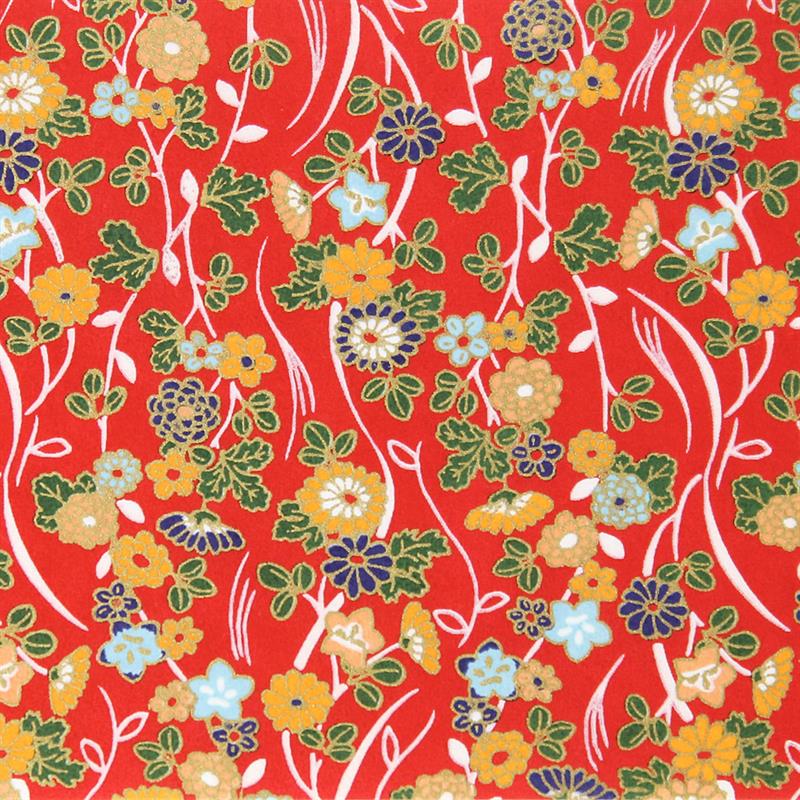 Hand-Dyed Yuzen paper is a kind of decorative paper screen-printed with multi-color. Japanese classical pattern designed with modern touch boldly and delicately, known as “Beauties of nature”, is used on this paper. “Beauties of nature” are also often used in kimono and most these bright, rich colors and motifs signify good fortune. This paper can be used in various ways, for example, wrapping, decorating walls and so on. This paper is made of Echizen washi paper produced in Echizen City (Fukui Prefecture, Japan). Washi paper in this area is designated as an Important Intangible Cultural Property of Japan, and has an established reputation for its high quality. Yuzen paper is hand-dyed color by color, so has some displacements of the patterns and color shadings. Thanks to these, it has a tasteful, unique texture or, a characteristic of hand-dyed products.