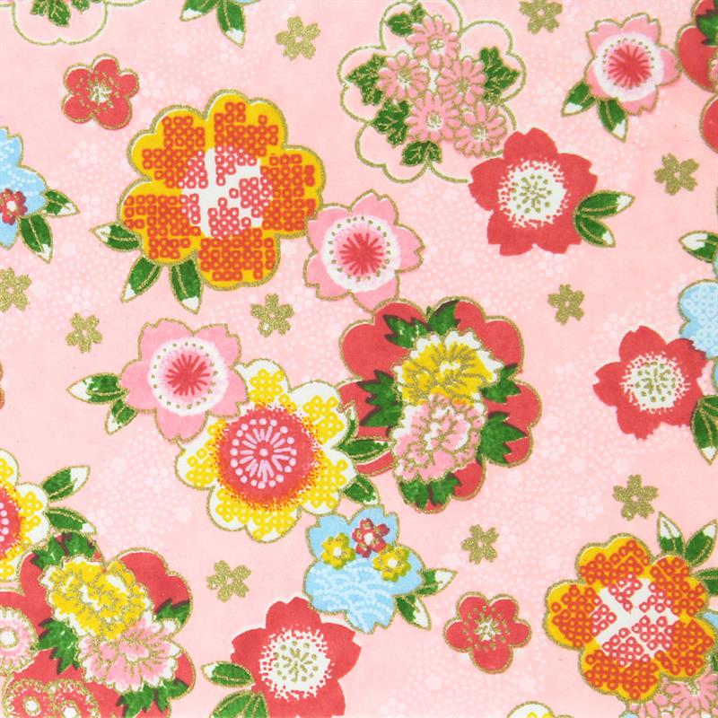 Hand-Dyed Yuzen paper is a kind of decorative paper screen-printed with multi-color. Japanese classical pattern designed with modern touch boldly and delicately, known as “Beauties of nature”, is used on this paper. “Beauties of nature” are also often used in kimono and most these bright, rich colors and motifs signify good fortune. This paper can be used in various ways, for example, wrapping, decorating walls and so on. This paper is made of Echizen washi paper produced in Echizen City (Fukui Prefecture, Japan). Washi paper in this area is designated as an Important Intangible Cultural Property of Japan, and has an established reputation for its high quality. Yuzen paper is hand-dyed color by color, so has some displacements of the patterns and color shadings. Thanks to these, it has a tasteful, unique texture or, a characteristic of hand-dyed products. size: 525 x 660 mm (pattern area: 500 x 635 mm)