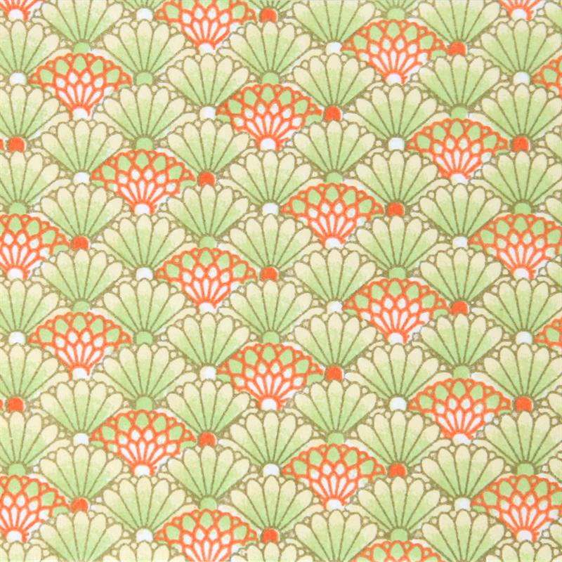 Hand-Dyed Yuzen paper is a kind of decorative paper screen-printed with multi-color. Japanese classical pattern designed with modern touch boldly and delicately, known as “Beauties of nature”, is used on this paper. “Beauties of nature” are also often used in kimono and most these bright, rich colors and motifs signify good fortune. This paper can be used in various ways, for example, wrapping, decorating walls and so on. This paper is made of Echizen washi paper produced in Echizen City (Fukui Prefecture, Japan). Washi paper in this area is designated as an Important Intangible Cultural Property of Japan, and has an established reputation for its high quality. Yuzen paper is hand-dyed color by color, so has some displacements of the patterns and color shadings. Thanks to these, it has a tasteful, unique texture or, a characteristic of hand-dyed products. size: 525 x 660 mm (pattern area: 500 x 635 mm)