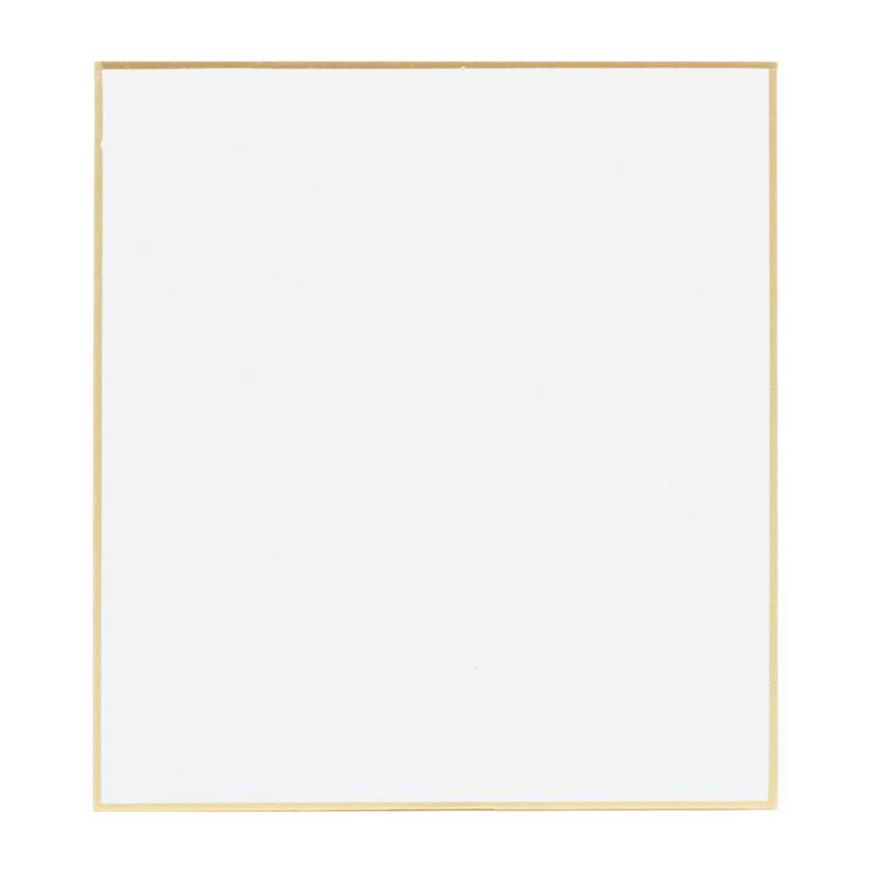 Shikishi Paperboard is for paintings, calligraphic works, illustrations, autographs, waka/haiku-poetries and so on. It is said that the begining to use this kind of paperboards was Heian and Kamakura period (8th~14th century); upper-class people have written waka-poetries on square colored papers and sticked them to the shoji sliding doors or folding fans. It is not clear since when the present shape pasted a core paper and 2 sheets of paper together has begun, but Shikishi paperboards has various sizes and any Japanese manufacturers produce under the same standard. It is composed of the front paper, core paper and back paper. The core paper is made from eco-friendly recycled paper. The edges of this paperboard are rolled up by a gold aluminium-tape. This tape makes the paperboard more bright. A lot of different kinds of papers are used in the front papers to be able to choose the right one. Appearance and running of colors on paperboards depend on manufacturing processes, length of the fibers and so on, so many people use differnt paperboards suited well to their arts of paintind and painting materials. We put the sample images of running of colors each paperboards, so you can see these diferrencies.