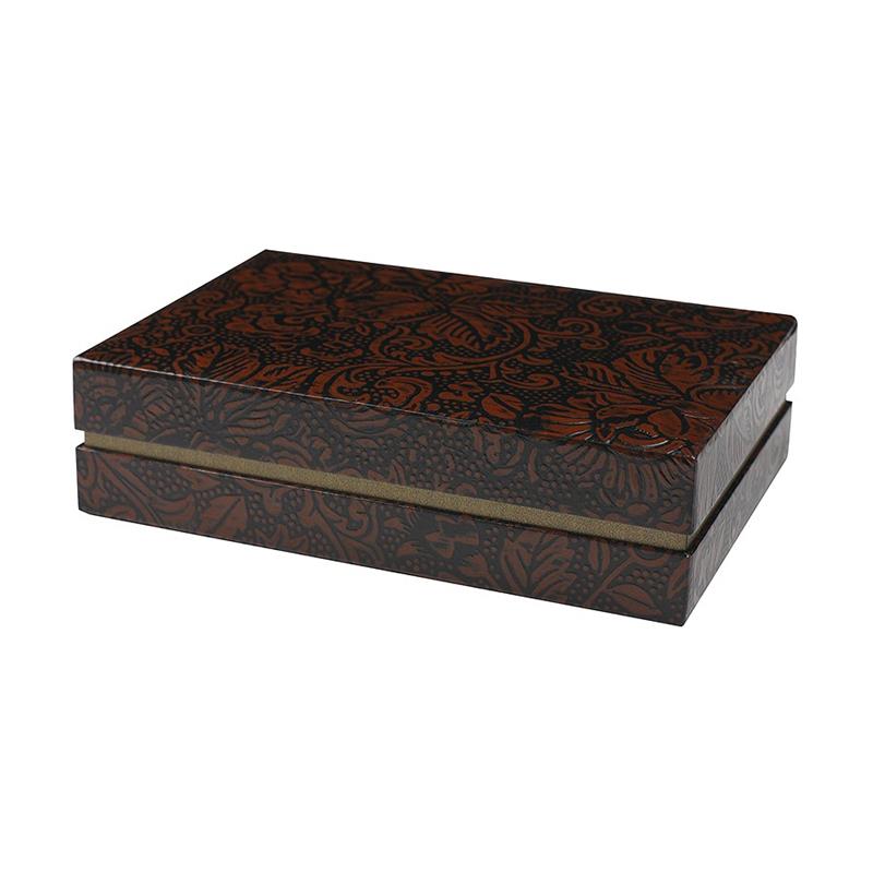 This is made of lacquer paper, or embossed kraft paper lacquered with cashew paint several times. Lacquer made from chinese lacquer tree was used until Taisho period (in the early 20th century), but nowadays cashew paint is applied because it is easy to handle and causes no rash. The making process of this lacquer paper is mostly hand-made by the craftsmen. This paper is durable and has a unique beautiful texture from Japanese tradition which makes more tasteful and warmhearted.
