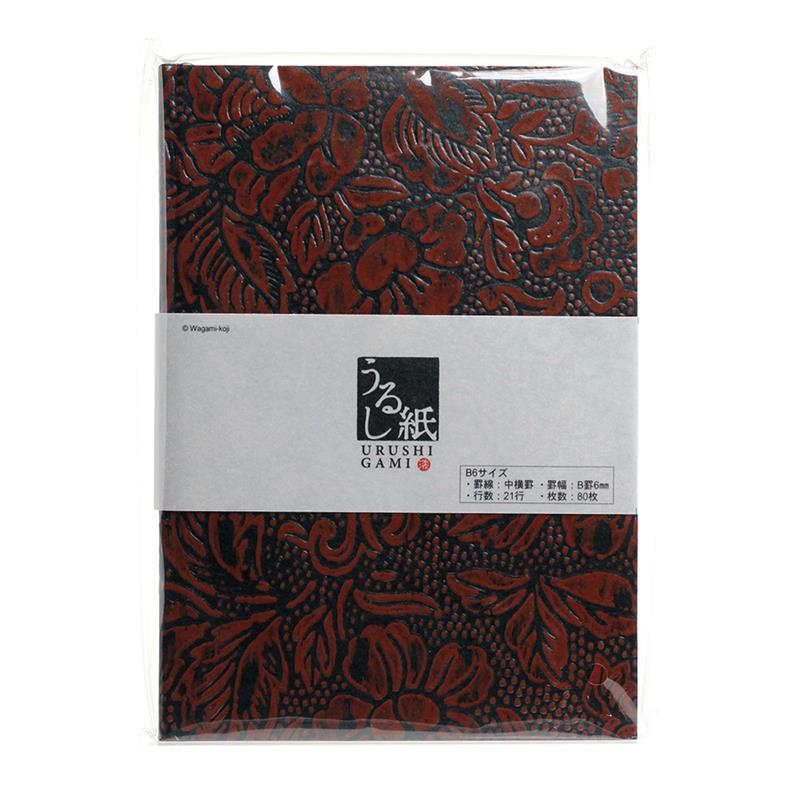 A B6 size sturdy hardcover notebook. This is made of lacquer paper, or embossed kraft paper lacquered with cashew paint several times. Lacquer made from chinese lacquer tree was used until Taisho period (in the early 20th century), but nowadays cashew paint is applied because it is easy to handle and causes no rash. The making process of this lacquer paper is mostly hand-made by the craftsmen. This paper is durable and has a unique beautiful texture from Japanese tradition which makes more tasteful and warmhearted.